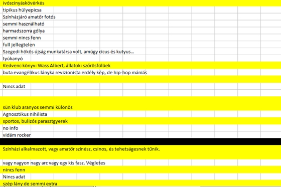 Az egészet elolvasva tök nyilvánvaló, hogy gólyatábor előtt leült egy pár HÖK-ös a Facebook és iWiW elé és végignyálazták az összes jelentkezőt. A táblázatban látványosan vannak olyan mondatok, amiket onnan kopiztak át.
